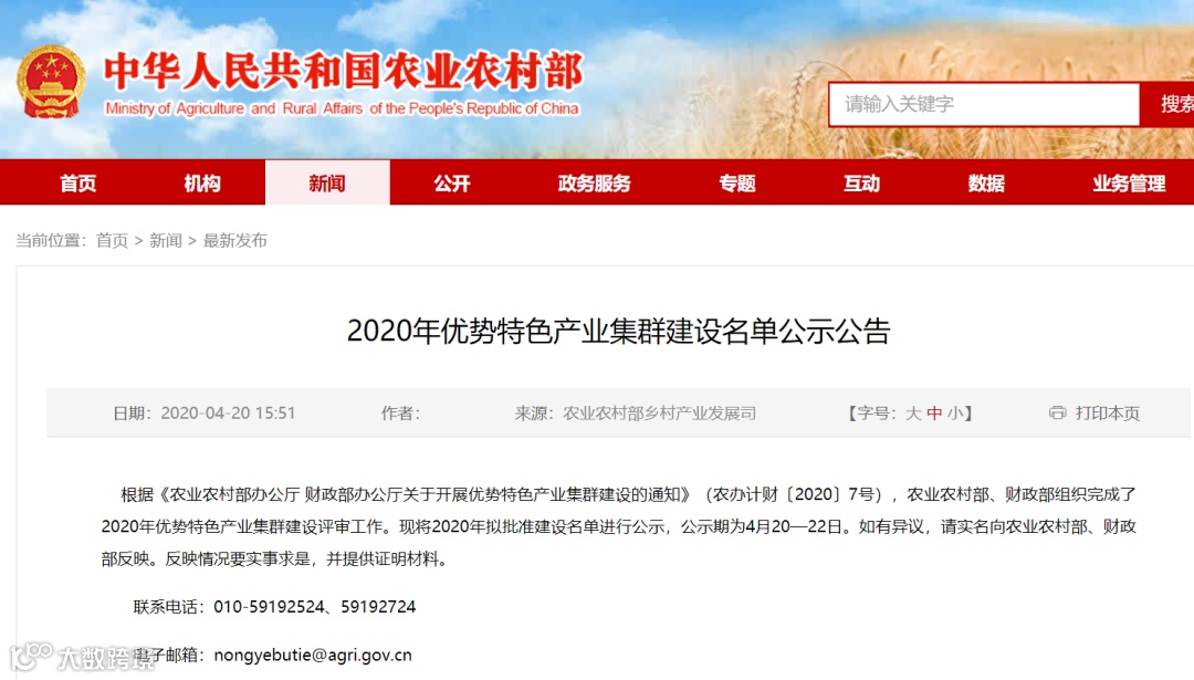 2020年优势特色产业集群建设名单公示公告