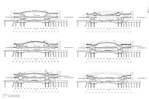 CT扫描的影响也体现在21世纪初的建筑表皮中。在OMA法国国家图书馆的竞标方案中,结构暴露于玻璃之后的方式被半透明的表皮包裹着“器官”的方式所取代(图十二)。FOA设计的横滨码头似乎也遵循了CT扫描的逻辑,由无数剖面来形成三维空间表面。该项目中,建筑没有简单的内外对立,而是成为一个结构和表面统一的连续折面,没有多余的骨骼或离散的器官(图十三)。