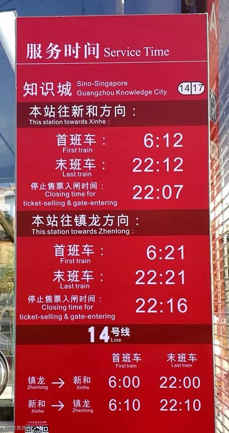 该线首尾车站——镇龙站与新和站的首班车时间分别是早上6:00、6:10,末班车分别为晚上22:00、22:10。全线10个车站,平均每站运行时间为2-3分钟,约24分钟跑完全程。另外,乘客从进闸到出闸的有效时限为60分钟。