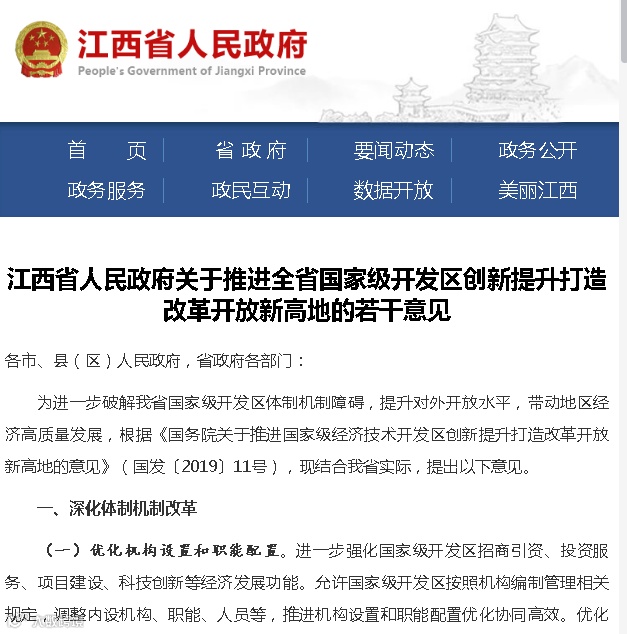 江西省人民政府关于推进全省国家级开发区创新提升打造改革开放新高地的若干意见