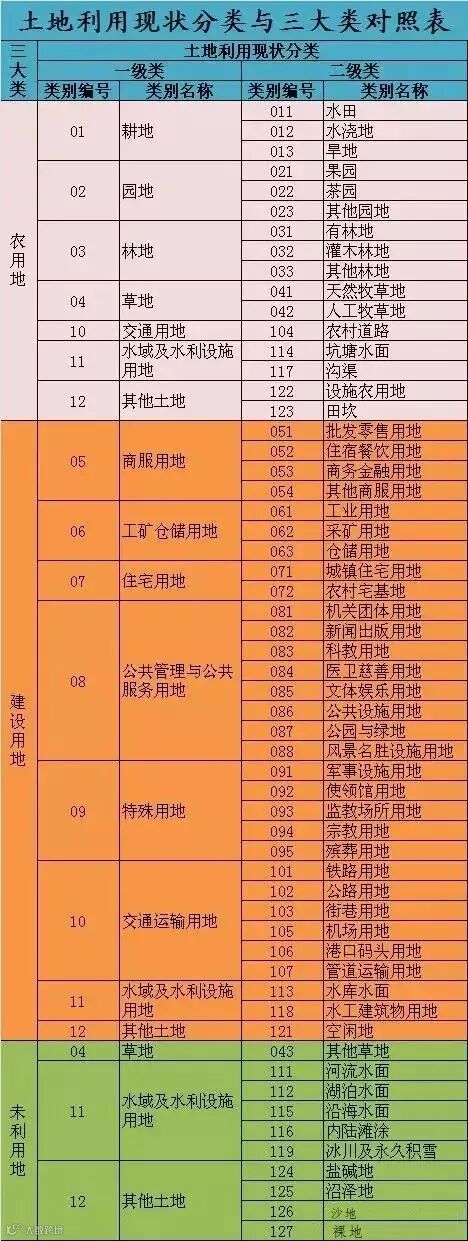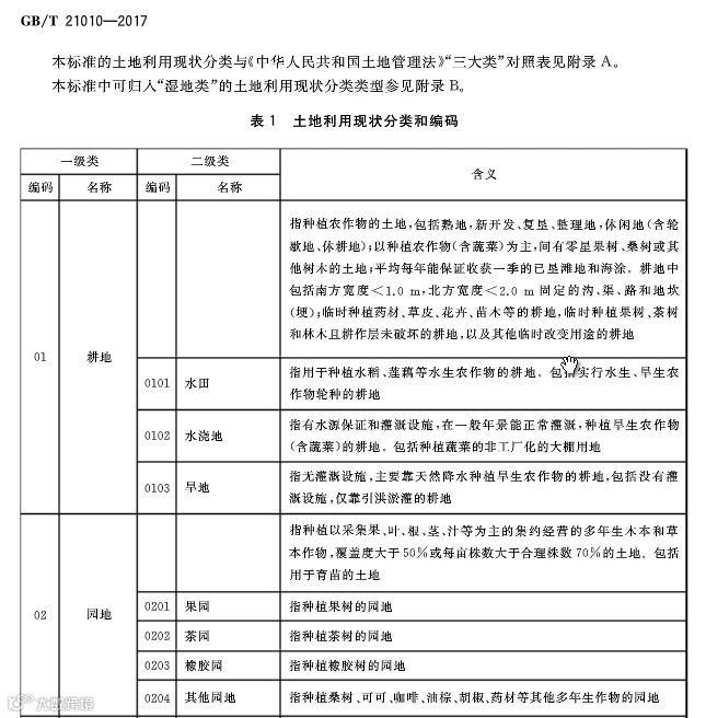 《土地利用现状分类》中详细的类别介绍: