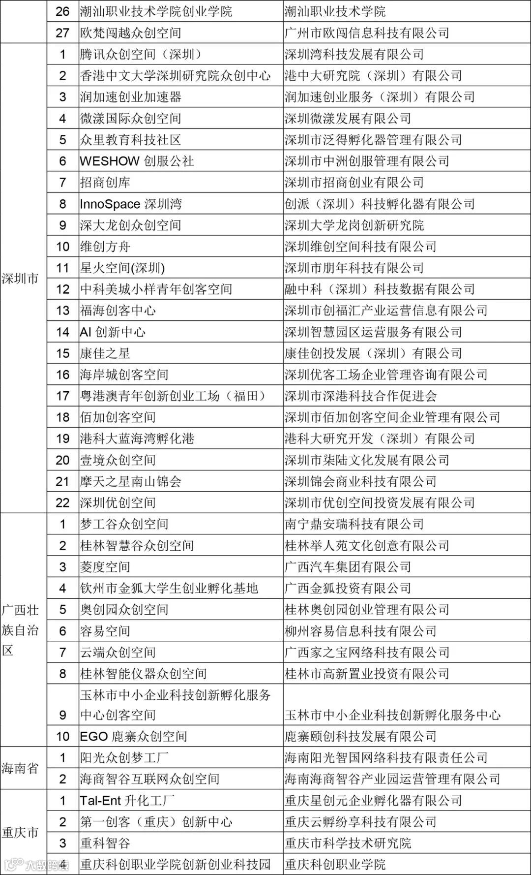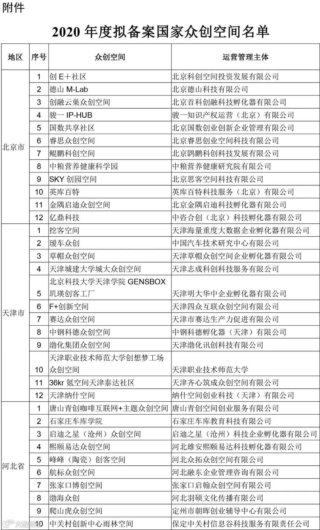 关于2020年度拟确定为国家备案众创空间名单的公示