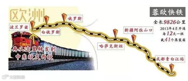 2011年,“渝新欧”最早开通的中欧班列,从重庆出发,经西安、兰州、乌鲁木齐,过边境口岸阿拉山口,进入哈萨克斯坦,再经俄罗斯、白俄罗斯、波兰,至德国的杜伊斯堡,全长11179公里,沿途经过6个国家。