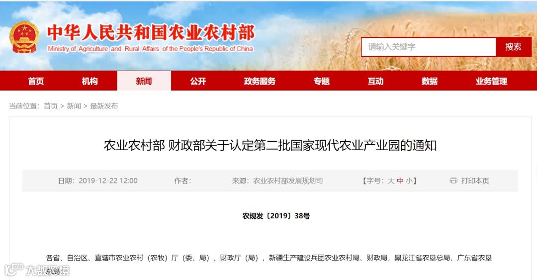 1.国家现代农业产业园将进入申报爆发期