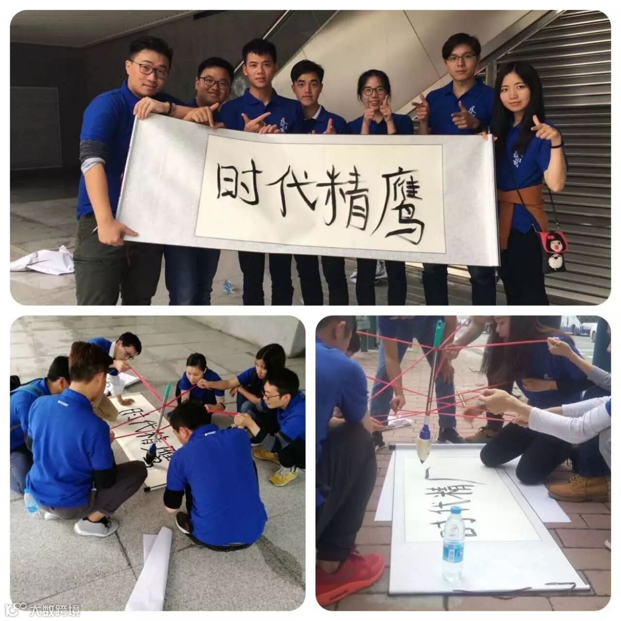 团队用同一只毛笔写下“时代精鹰”四个大字,并对字画进行营销,换取团队资金。