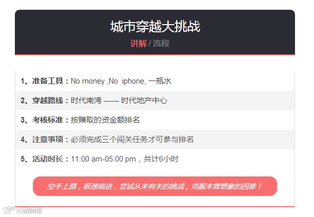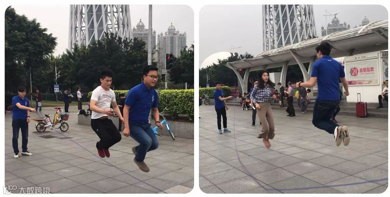 团队每个人需邀请一个路人一起跳大绳十次,任务完成后每人获得一条“永不抱怨”紫手环,可用于营销换取团队资金。