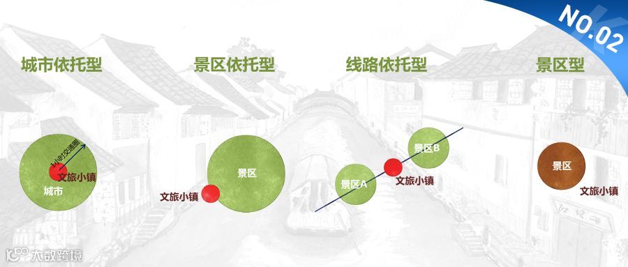 在此区位基础上,处于景区之间、旅游线路上的小镇需要依据自己的文化打造自身的旅游特色,根据自己的区位特色提供适合的旅游服务,打造成为线路旅游新的增长点及完善旅游功能的配套点,同时辐射周边居民,成为在地客群新的旅游休闲地。