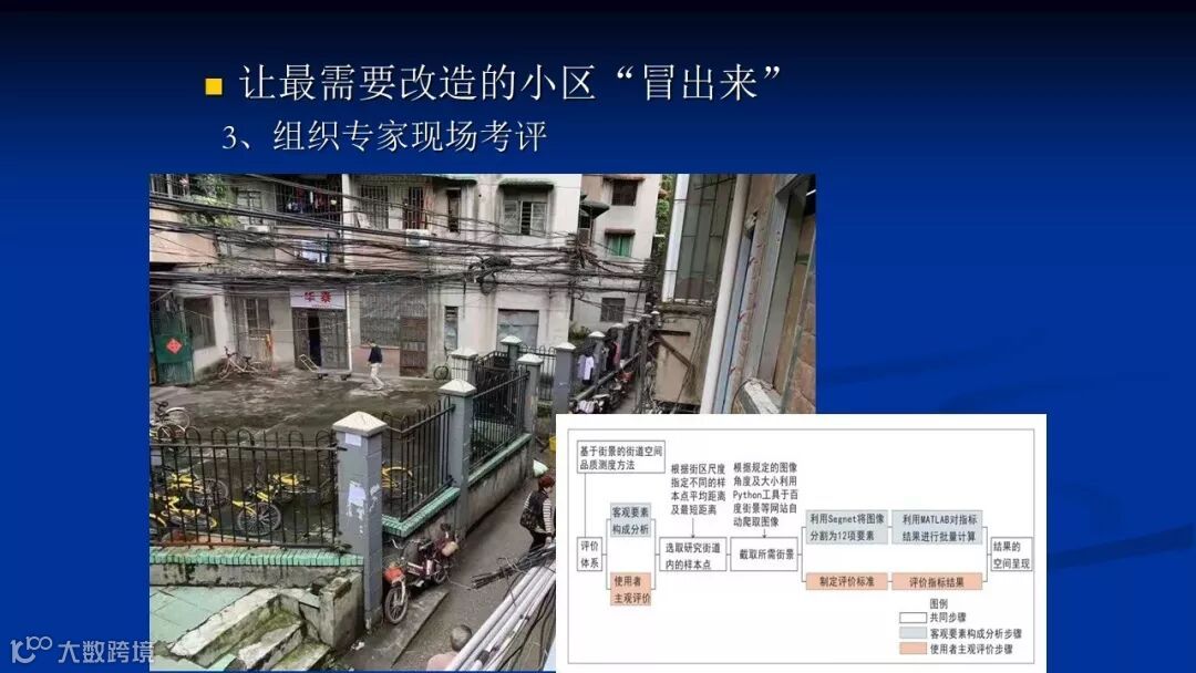 然后,在以上的工作基础上我们可以再组织专家现场考评。特别是对最差居住小区,通过专家的眼光跟群众的需求进行点对点的检查结合。一个具体的老旧小区评选流程也就创建出来了,并且有了这样一个流程也将使老旧小区改造更加规范有效率。