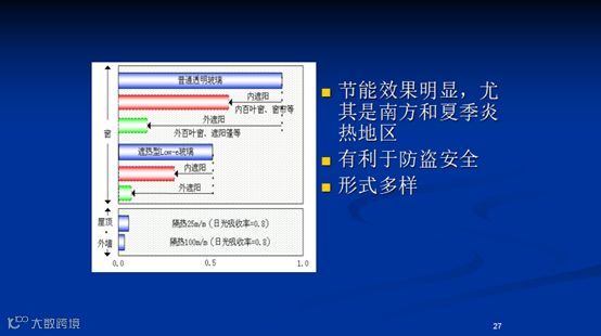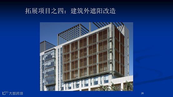 住宅外遮阳改造节能效果十分明显,我们通过北京地区的实地试验,在盛夏季节,仅靠常用的内遮阳,就相当于一盏400瓦的电炉放在室内,等于这么多的热量直接进入屋内,就必须用更多的空调消耗电量才能进行抵消。但如果利用简单廉价的外遮阳,就可削减近90%的入户阳光能。而如果是仅利用相对昂贵的Low-E玻璃窗户,则只能削减50%的夏季阳光能,但这又挡住了相应的冬季阳光能量。而且外遮阳装置的特殊设计还可以提升防盗安全。