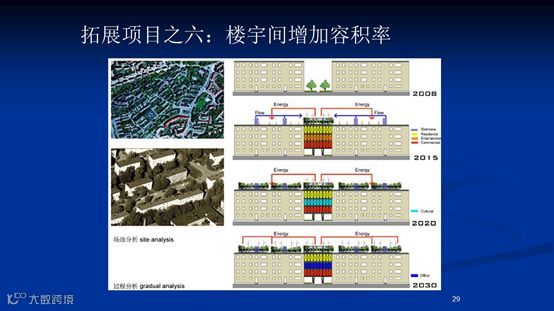 通过精心设计比较,老旧小区楼宇间可以增加一些容积率,因为过去这些老旧楼宇的空间利用率是比较低的。利用这些空间我们可以在进行美化社区的同时还增加建筑容积率和服务功能。