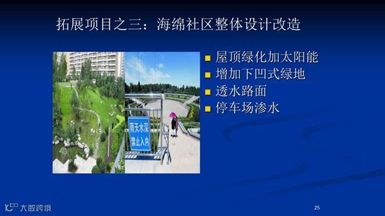 通过老旧小区住宅和建筑物屋顶绿化、设置雨水收集桶和下沉绿地、透水路面、停车场渗水等方式整体改造老旧小区,采取这样一些简单低廉的改造方式能够使城市老旧小区增强排水弹性,既可有效削减洪涝暴雨的威胁,又能通过雨水收集达到建设节水型社区之目的。