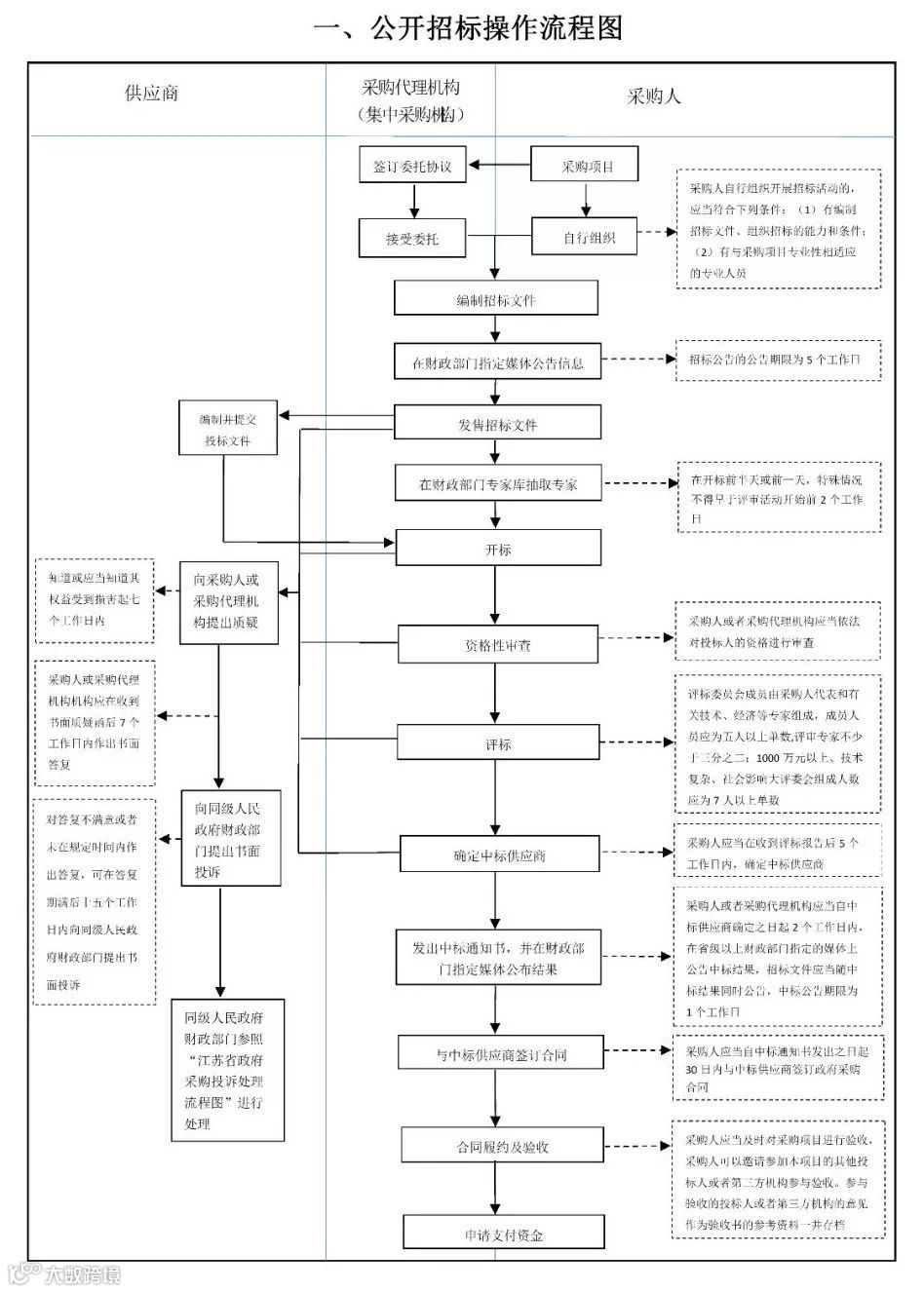 江苏省财政厅政府采购处日前发布了6张操作流程图,包括公开招标操作流程图、竞争性谈判操作流程图、单一来源操作流程图、邀请招标操作流程图、询价操作流程图、竞争性磋商操作流程图,非常值得学习、借鉴。