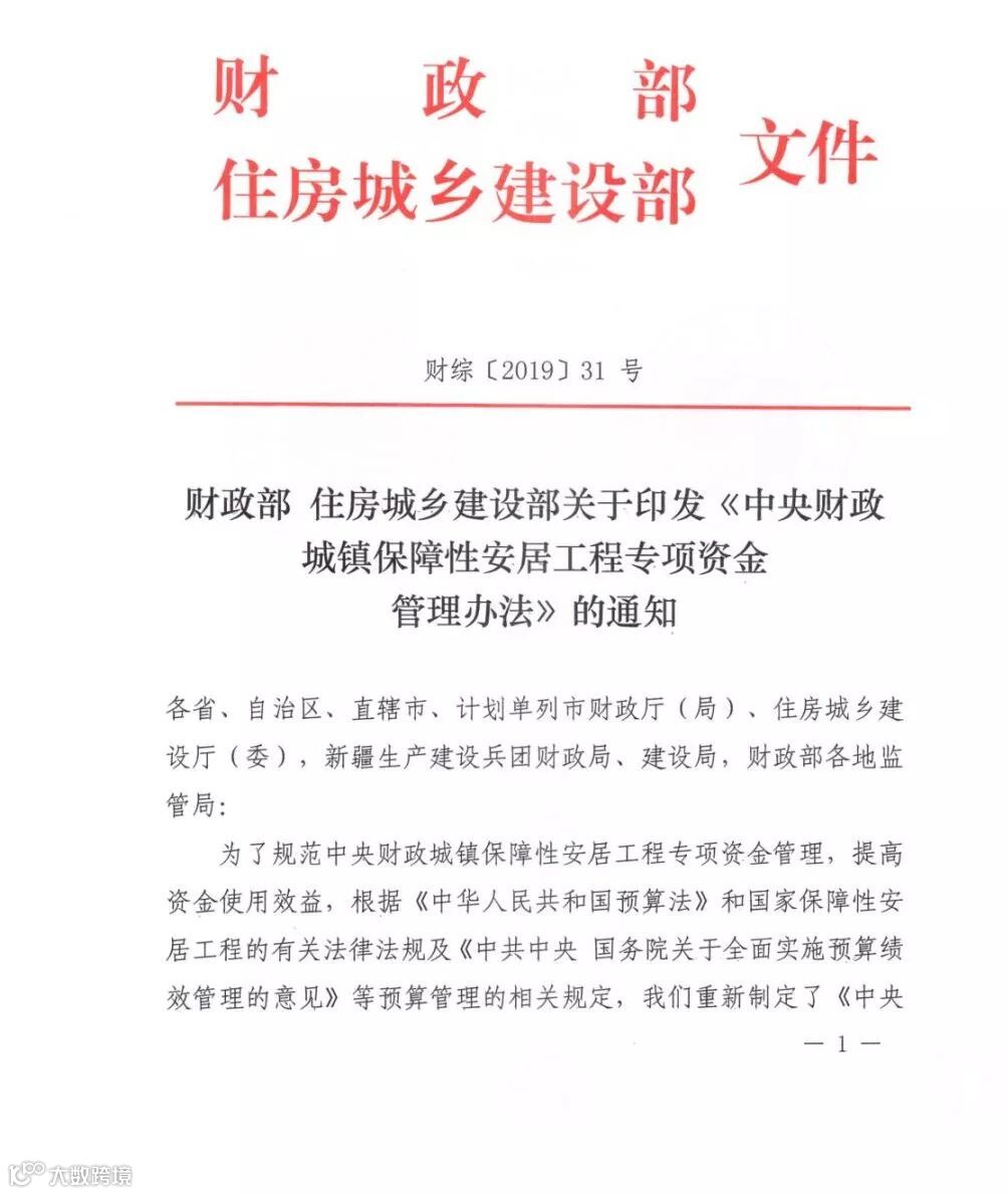 根据财政部数据,2018年中央财政城镇保障性安居工程专项资金支出约1275亿元,2019年预计为1433亿元。
