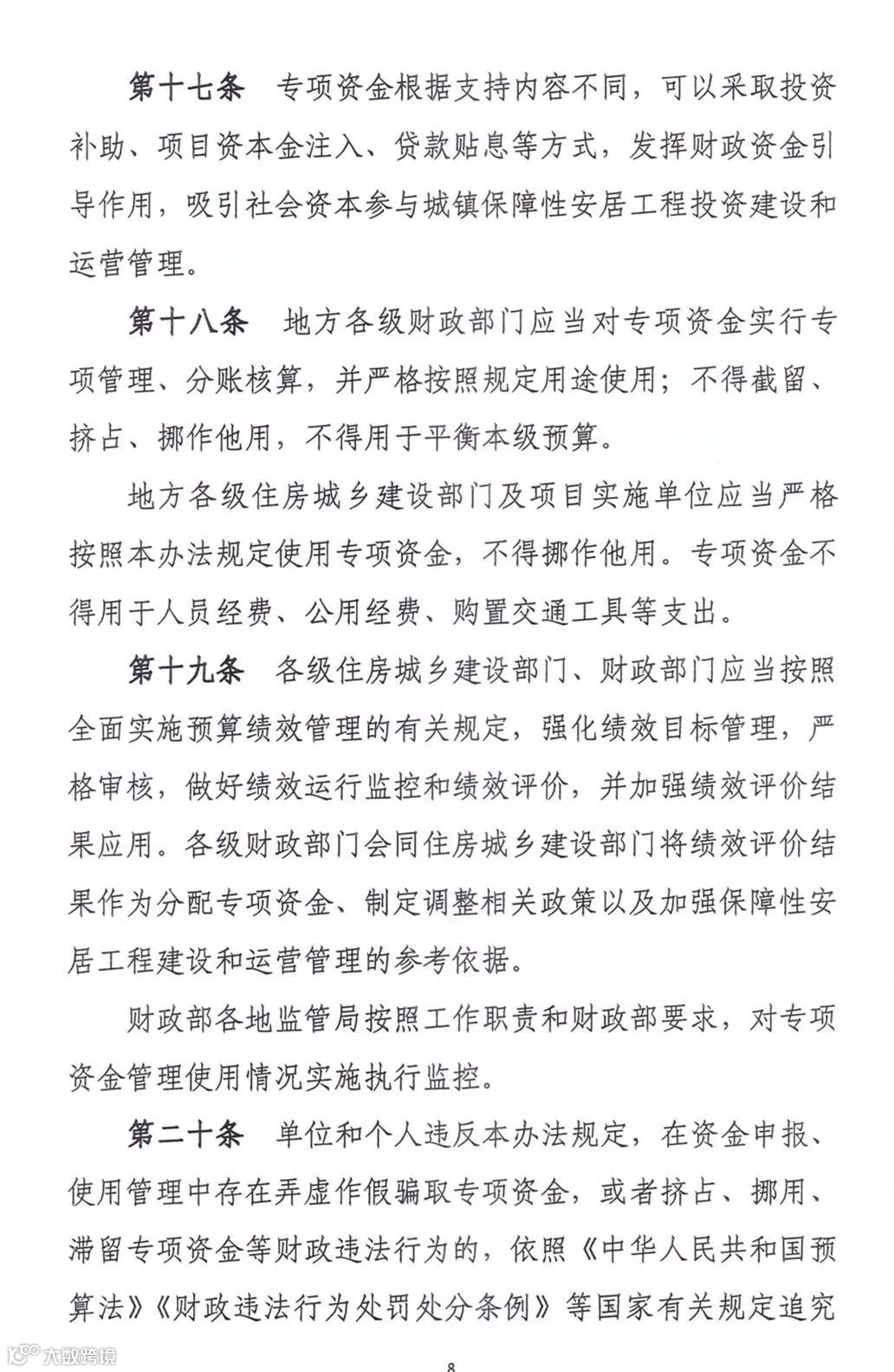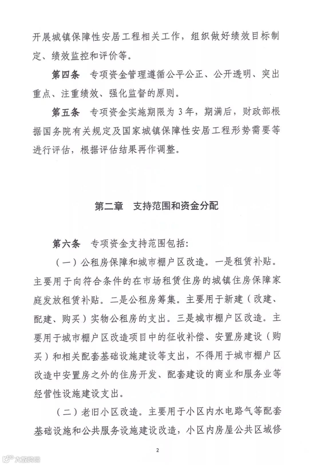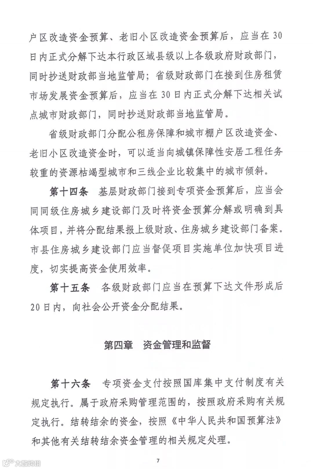 《办法》第六条在提及专项资金支持范围时,在公租房保障和城市棚户区改造之后,明确纳入老旧小区改造,即主要用于小区水电路气等配套基础设施和公共服务基础设施改造,小区内房屋公共区域修缮、建筑节能改造,支持有条件的加装电梯支出。