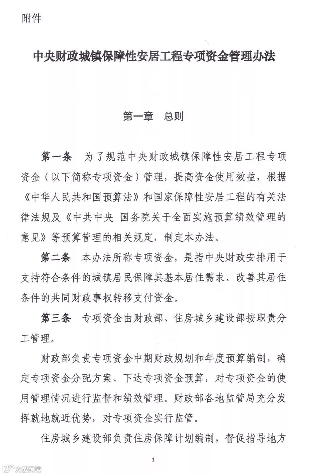 附件:中央财政城镇保障性安居工程专项资金管理办法