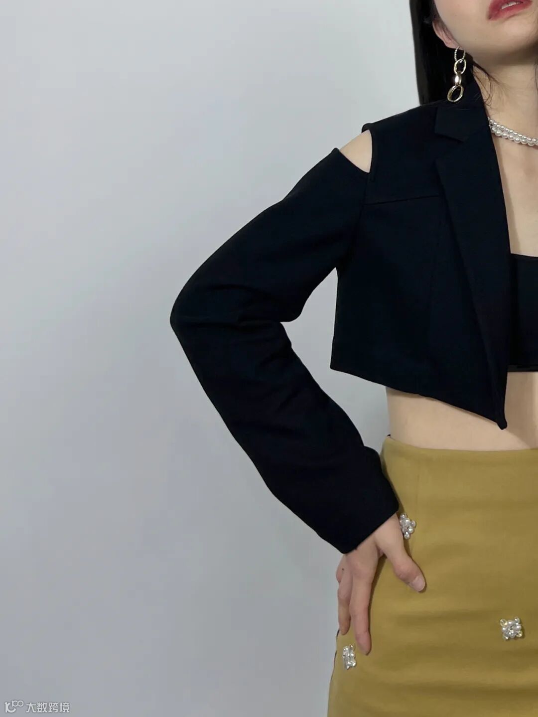 腰间的露腰设计凸显一丝松弛