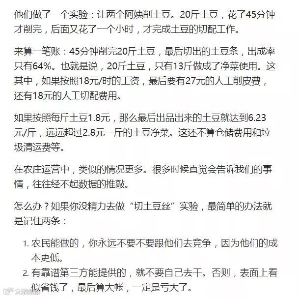 菜市场土豆1.8元一斤,第三方供应链的土豆丝2.8元一斤,你会买哪个?