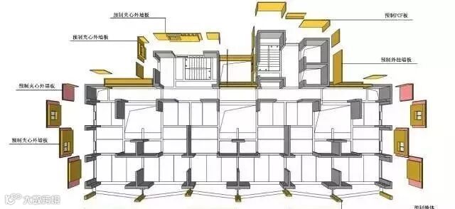 该项目采用装配整体式框架—现浇核心筒结构体系,预制率达到53.3%,围护结构及栏杆等部品部件装配率达93%。通过标准化设计,“少规格、多组合”减少预制构件种类,降低建造成本; 结构设计与施工技术整合创新,通过土建与装修一体化设计,实现无外模板、无外脚手架、无现场砌筑、无抹灰的绿色施工,缩短施工周期。