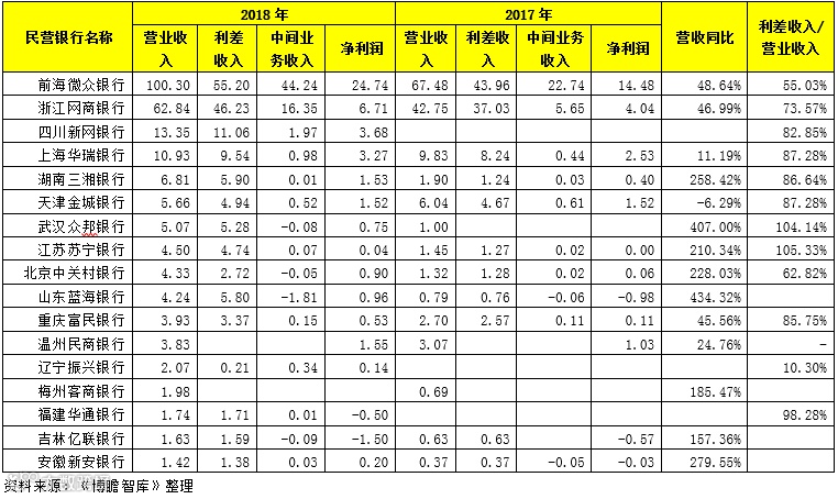 第三,四川新网银行、华瑞银行是另外两家营业收入在10亿元以上的民营银行,此外温州民商银行的创利能力也不错。