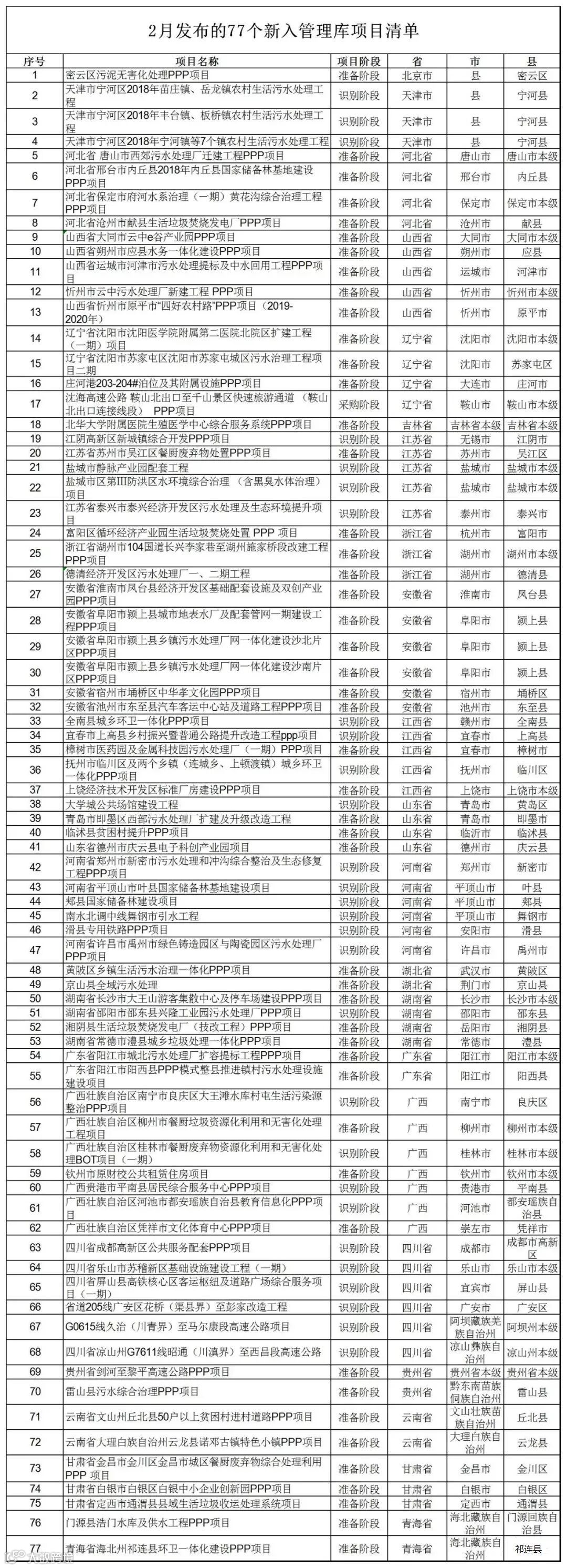 十、 2019年2月发布的77个新入管理库项目清单