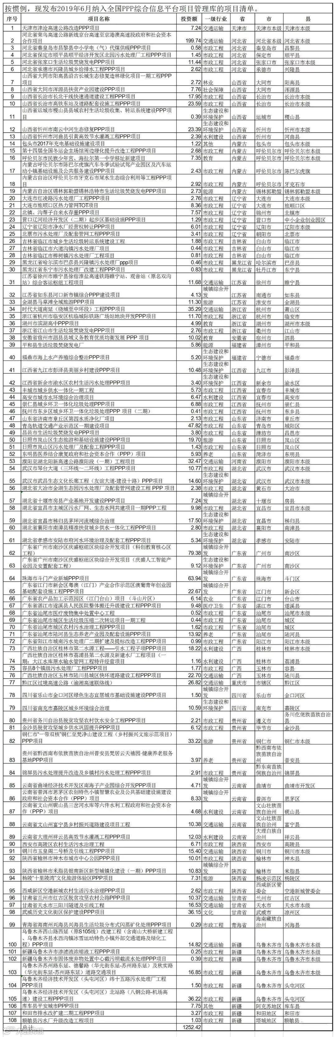 十四、 2019年6月份108个新入管理库项目清单