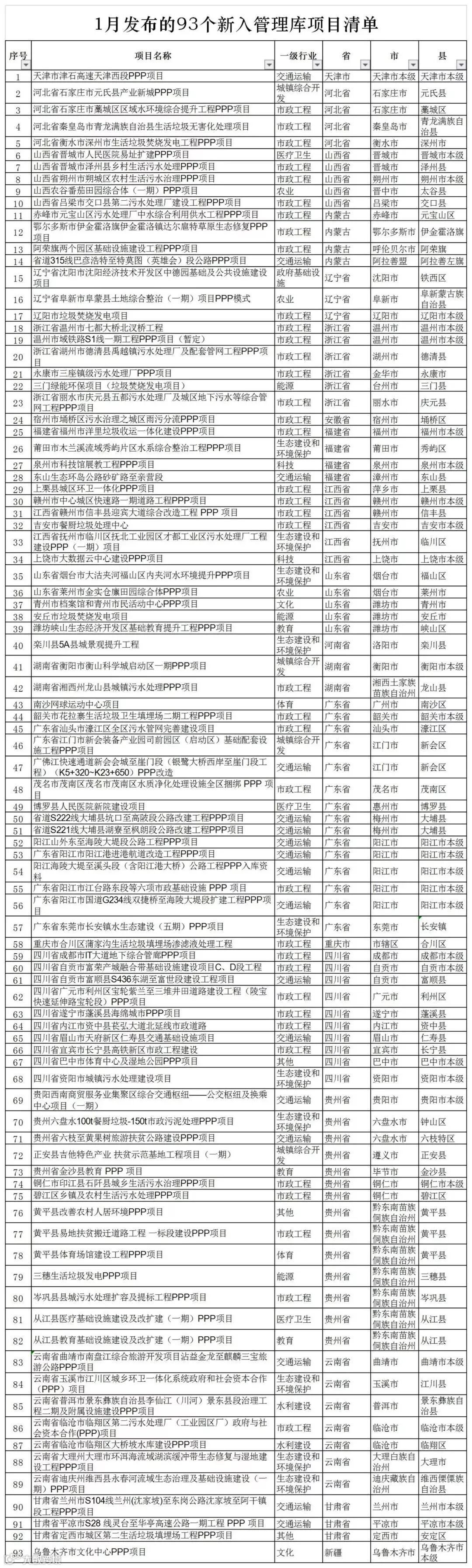 九、 1月93个新入管理库项目清单