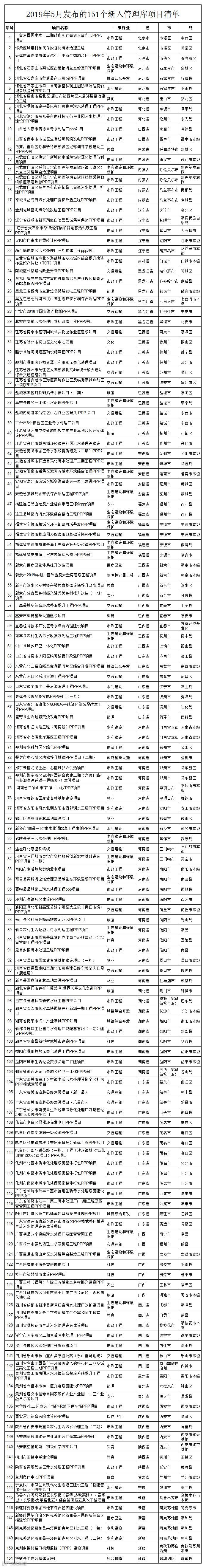 十三、 2019年5月发布的151个新入管理库项目清单