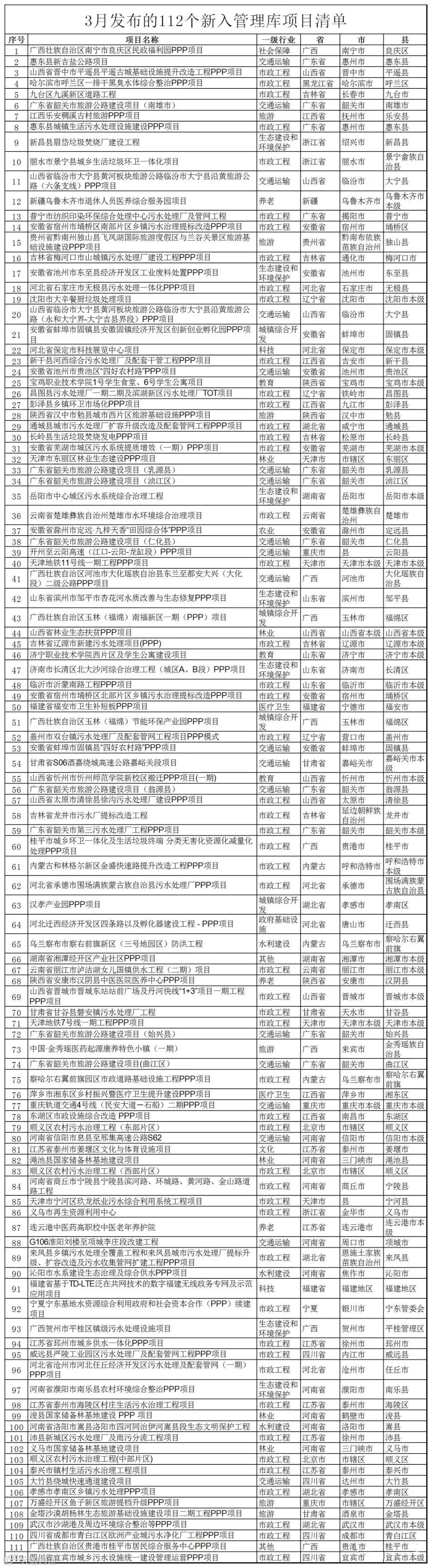 十一、 2019年3月份新入库112项目清单