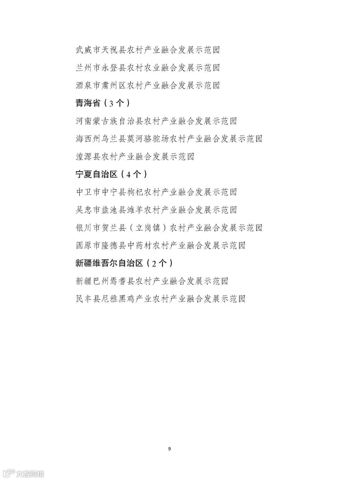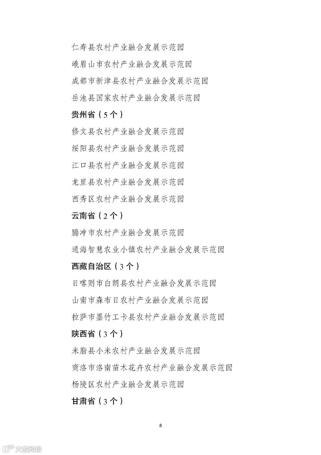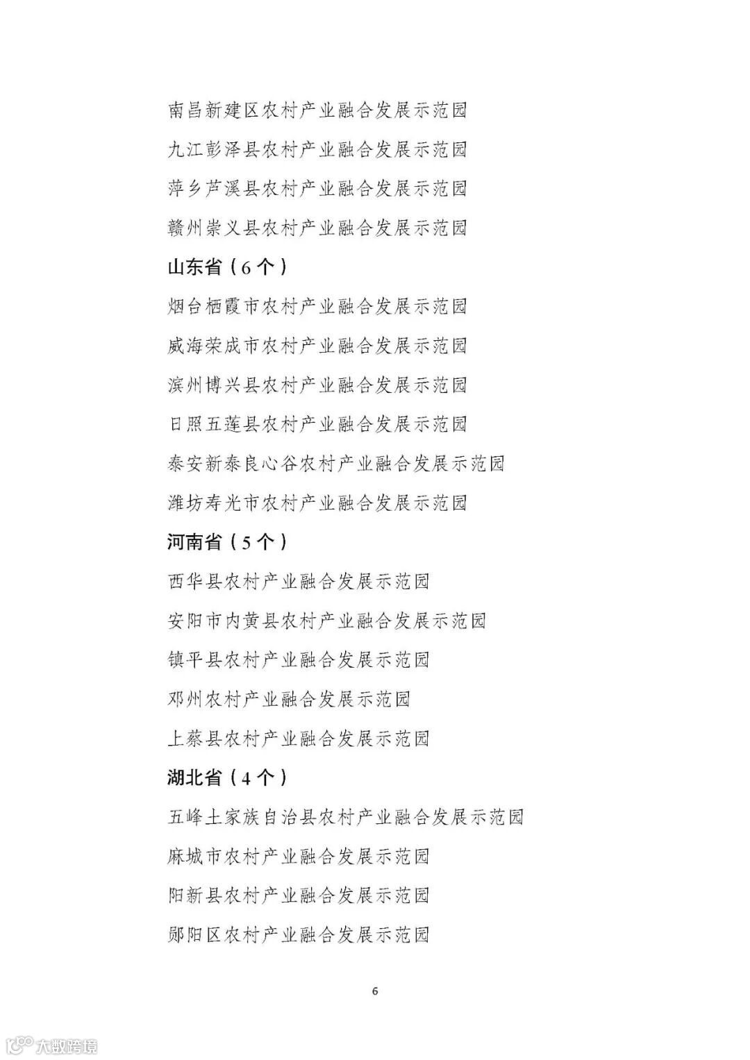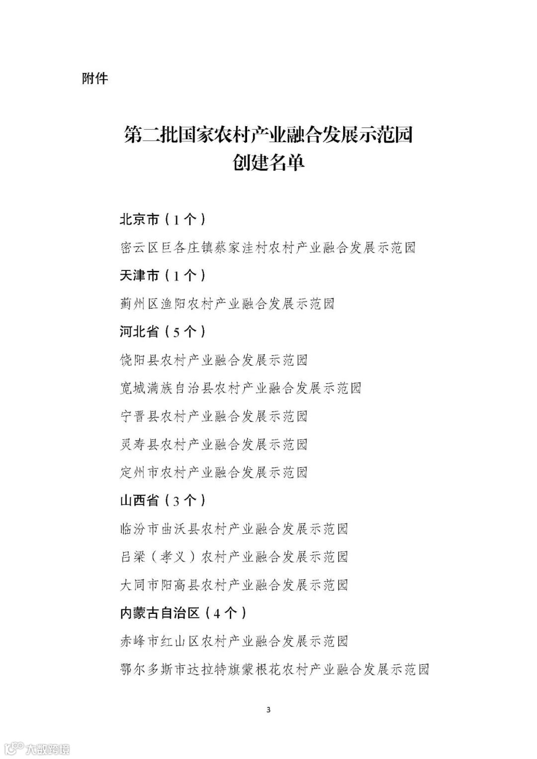 关于印发《第二批国家农村产业融合发展示范园创建名单》的通知