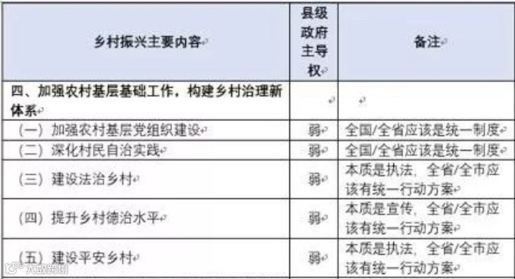 哪些是县级层面(应该)具有主导权的?对乡村振兴的内容进行了详细梳理,结果如下:
