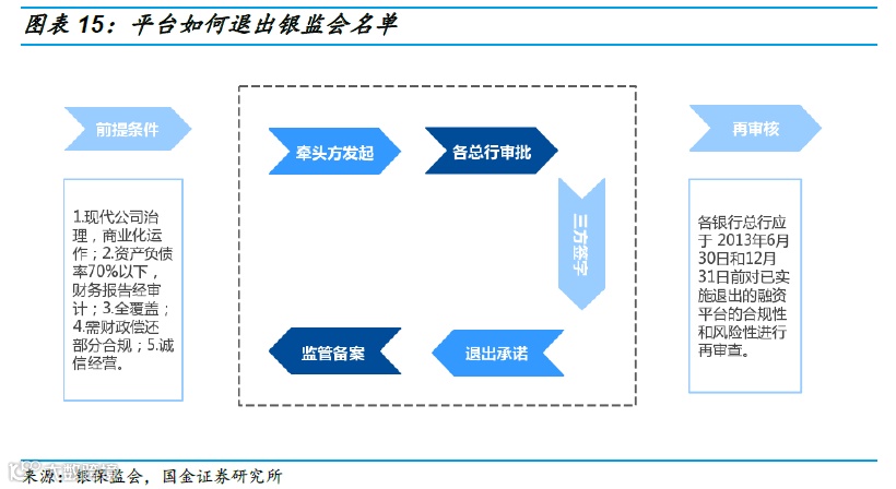 《关于加强2013年地方政府融资平台贷款风除监管的指导意见》(银监发[2013]10号)[40]文件对城投如何退出银保监会名单进行了说明。