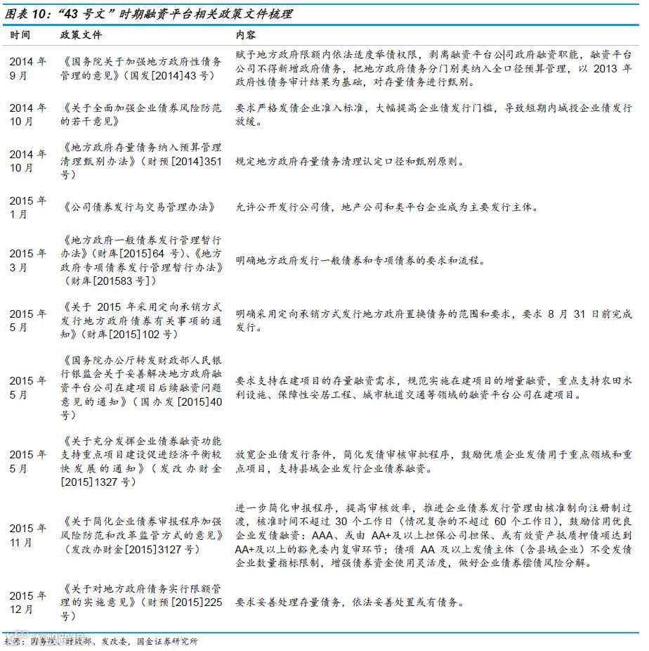 去年7月23日国常会提出引导金融机构按照市场化原则保障融资平台公司合理融资需求;10月11日101号文[1]也提出了“合理保障融资平台公司正常融资需求”的一系列举措。那么,频频提到的融资平台到底是什么?融资平台怎样形成的?未来融资平台将如何发展?本文对融资平台的来龙去脉和政策变迁进行了梳理分析,以供投资者参考。