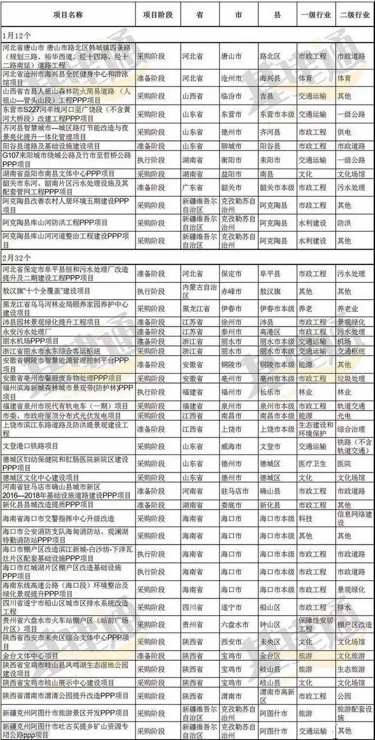 按照PPP项目库“能进能出”原则,2019年1-2月各省级财政部门审核同意的地方主动退出管理库项目共44个(见下表),现予公布。这些项目不再采用PPP模式实施和管理,财政部门不得再按PPP政策和制度违规安排支出。