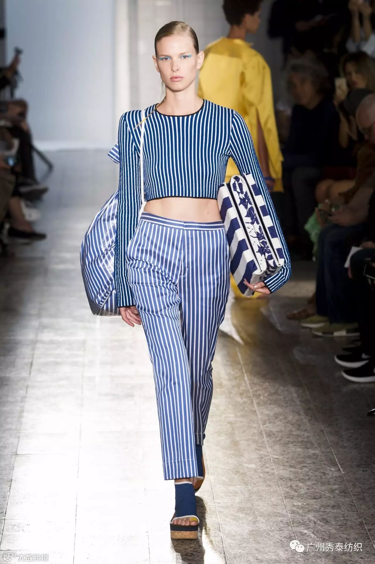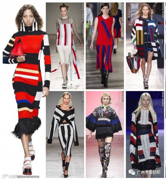 本季条纹元素演变出更多元化的混合方式,色彩艳丽醒目的条纹充满青春活力,给设计师无限发挥空间。