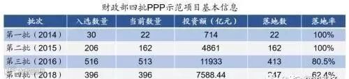 财政部发布的《关于公布第四批政府和社会资本合作示范项目名单的通知》,确定北京市新机场北线高速公路(北京段)PPP项目等396个项目入选第四批政府和社会资本合作(PPP)示范项目,涉及投资额7588亿元。
