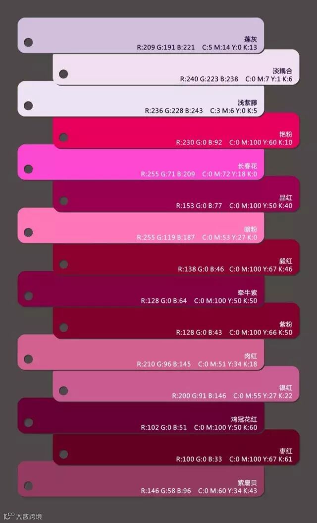 各种颜色的中文名字你知道么?看了这个,你就可以告诉别人你要的究竟是什么颜色了!搞不搞设计的都可以留用,附有RGB、CMYK值,超级实用!