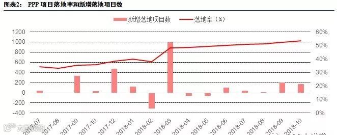 2018下半年以来,PPP项目净入库数量和净入库资金规模由负转正,8-10月净增加129个项目,资金规模净增加4347亿元,相较1-7月大幅回暖,主要得益于7月底国务院常务会议和政治局会议强调“财政政策要在扩大内需和结构调整上发挥更大作用”。项目落地率在3月有一个大幅度抬升,源于第三批PPP示范项目集中落地,此后保持相对平稳,9-10月共计新增落地374个项目,总体落地速度还未显著加快。