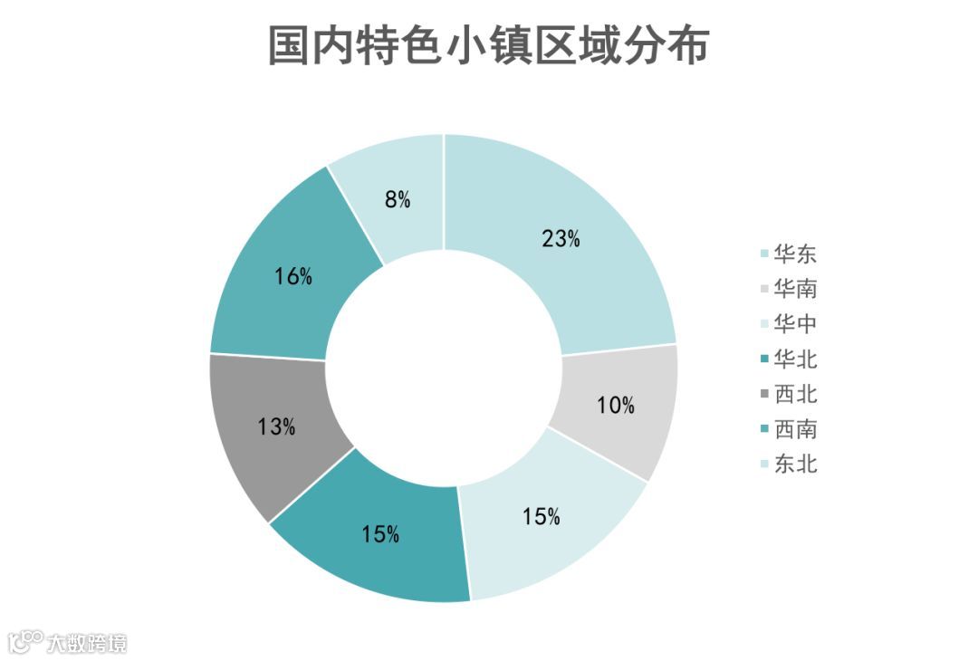 受自然资源和地理因素影响,目前文旅地产的地域分布不均衡。截至2017年8月22日,住建部公布全国第二批特色小镇名单,我国特色小镇共403个,大部分集中在自然资源丰富、风景优美的华东地区。其中华东、西南、华北、华中四大区域的项目数量较多,分别占全国首两批文旅地产总数量的23%、16%、15%、15%。最近几年,西南、两广和闽东南地区文旅地产发展也非常迅速,不同区域有着各自的特色及标签。