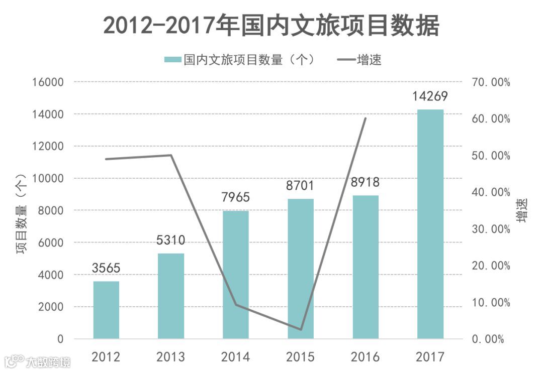 2012-2014年间,文旅地产处于野蛮生长阶段,平均每年新增的文旅项目约2200个,年平均增速达83%。据观点指数统计数据显示,截至2014年底,全国文旅项目共7965个,同期上涨50%。