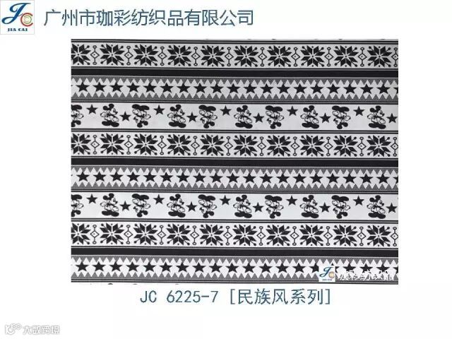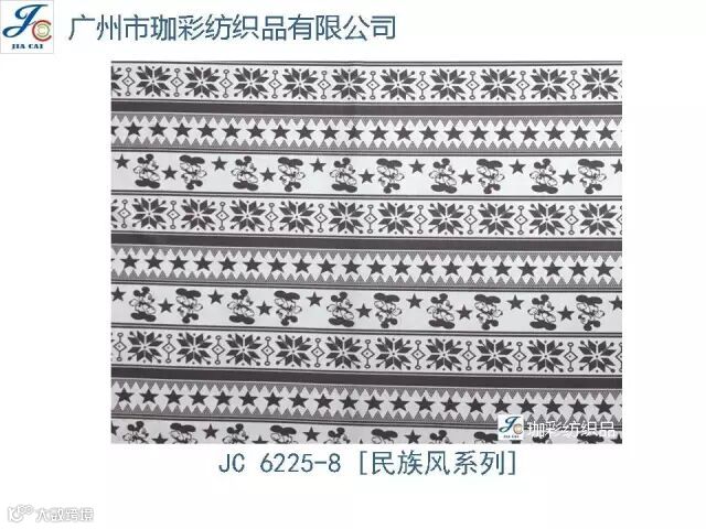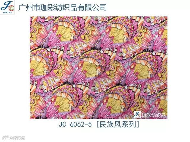 本公司是一家数码、转移印花专业制造商。公司致力于花型图案的设计与开发,以质量、服务、价值为核心;拥有上万个紧跟潮流花样的品种,实力和产品质量在行业中获得较高口碑。珈彩人的努力永不停歇,为您提供更优质的服务!
