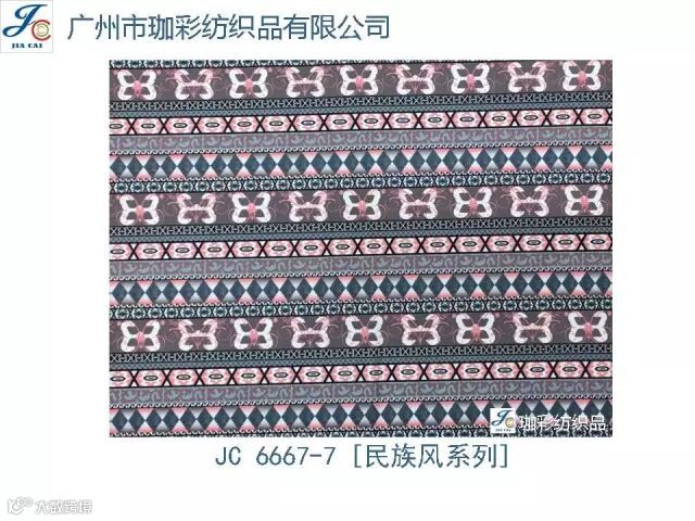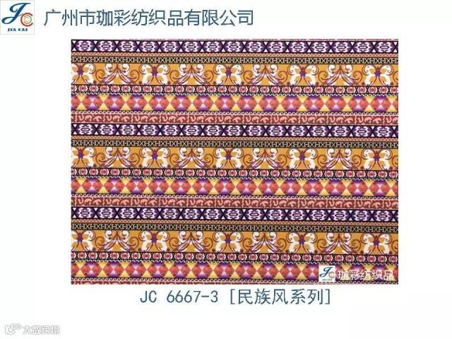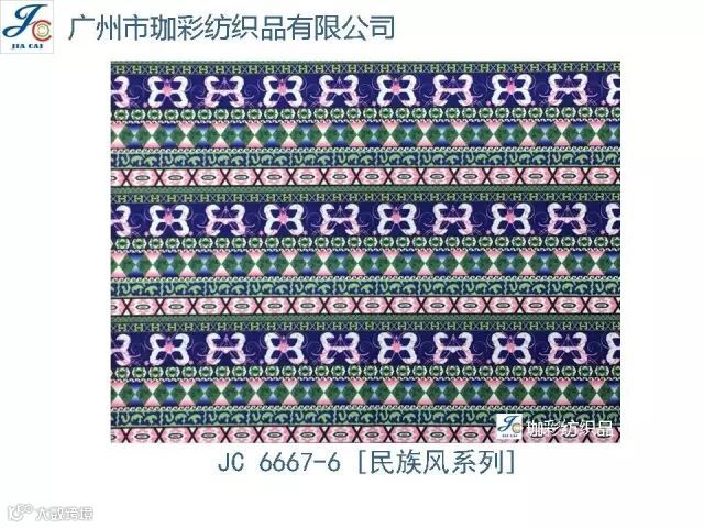 本公司是一家数码、转移印花专业制造商。公司致力于花型图案的设计与开发,以质量、服务、价值为核心;拥有上万个紧跟潮流花样的品种,实力和产品质量在行业中获得较高口碑。珈彩人的努力永不停歇,为您提供更优质的服务!