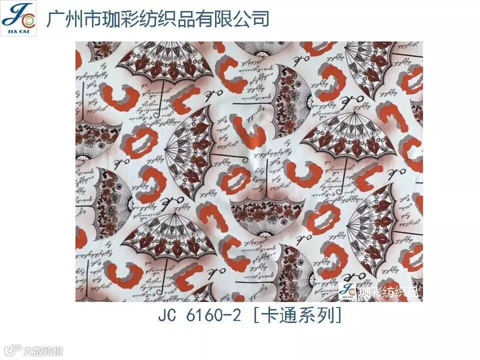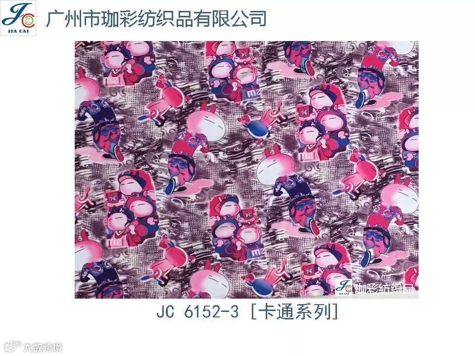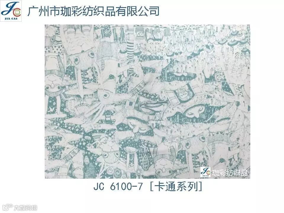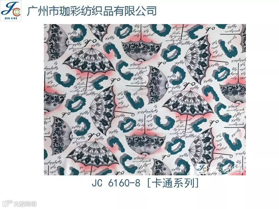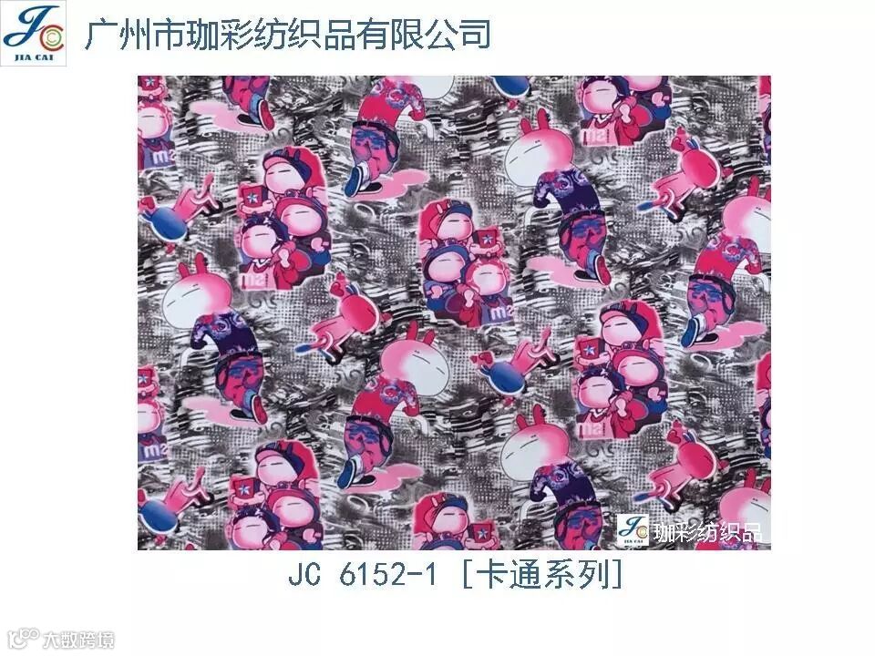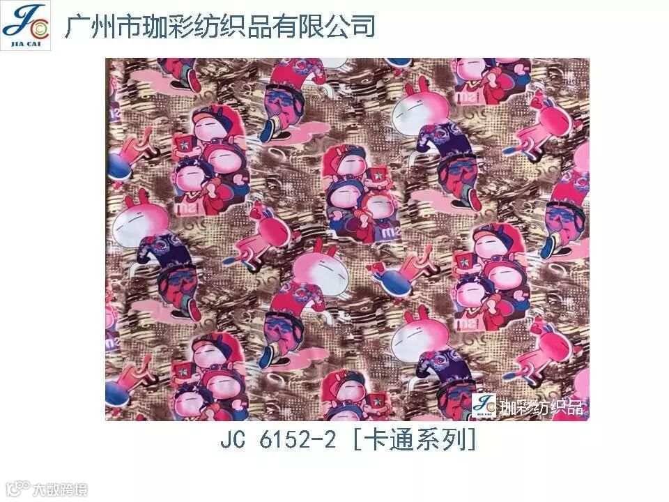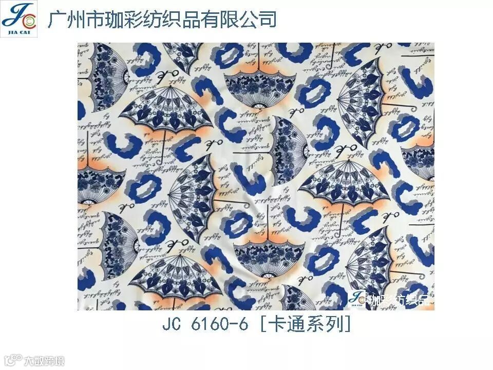 导读:珈彩纺织品本公司是一家数码、转移印花专业制造商。公司致力于花型图案的设计与开发,以质量、服务、价值为核心;拥有上万个紧跟潮流花样的品种,实力和产品质量在行业中获得较高口碑。珈彩人的努力永不停歇,为您提