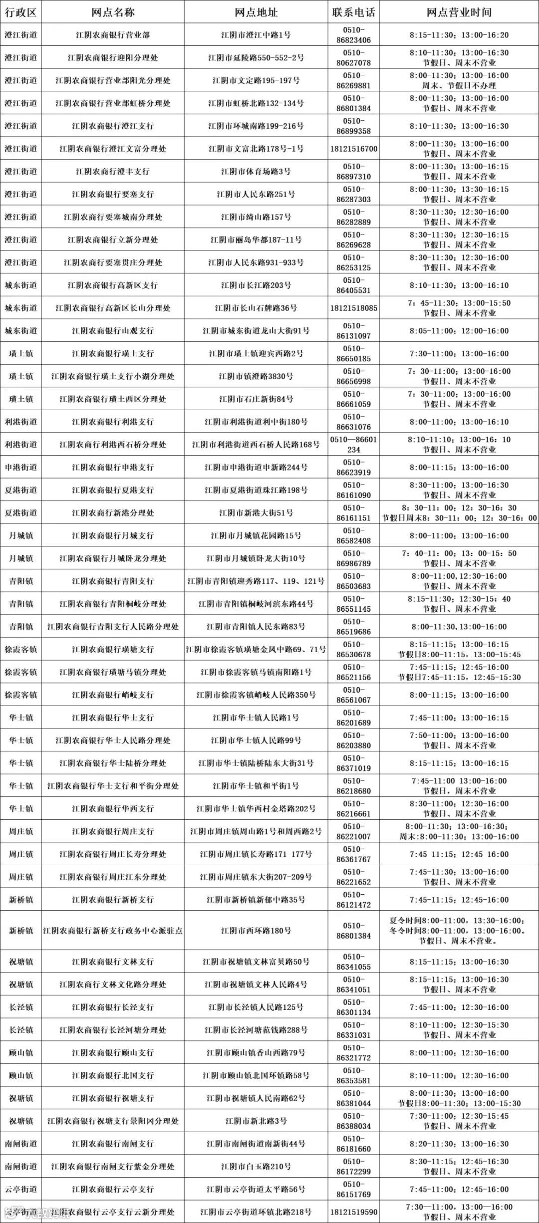 市民可前往江阴农商银行全市53个银行网点