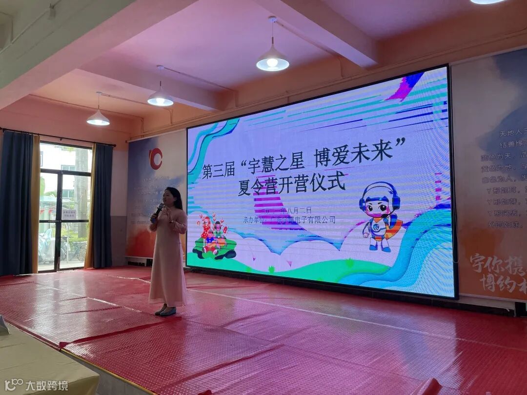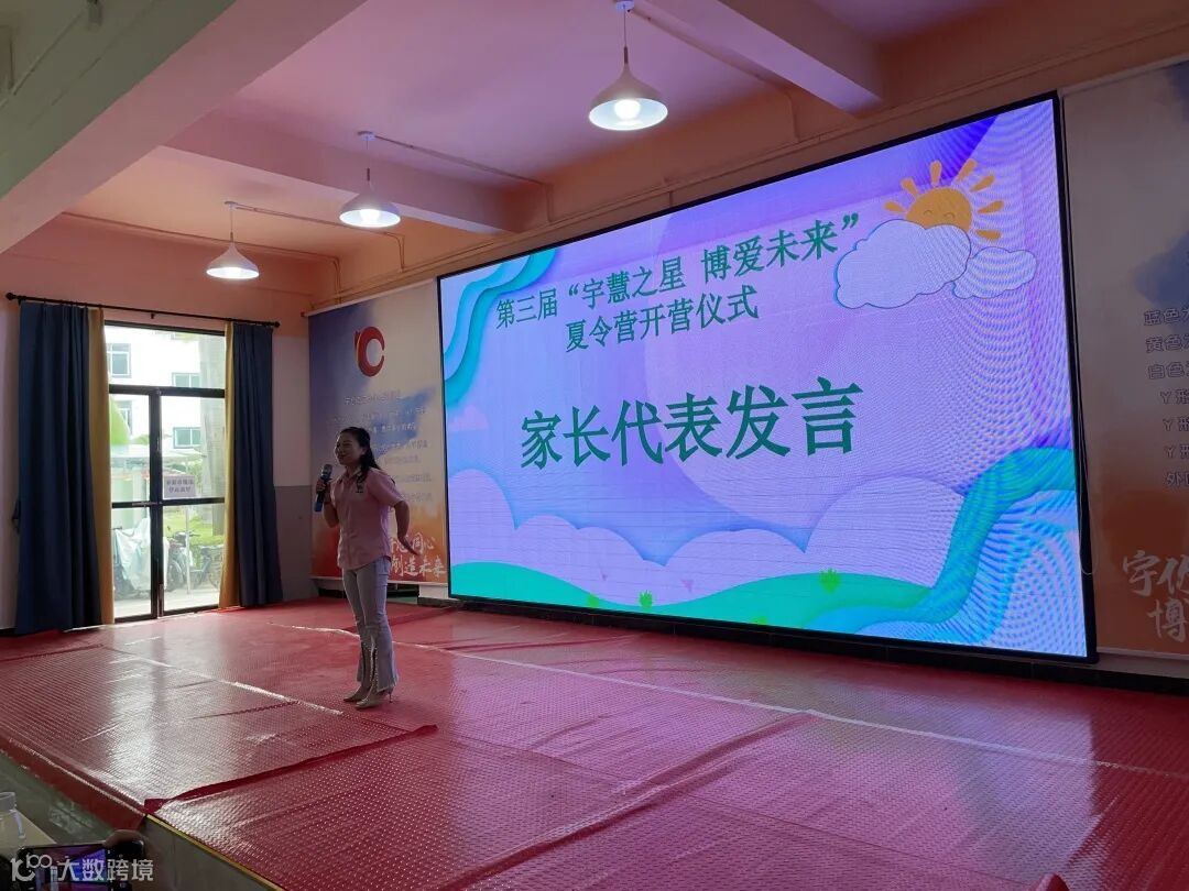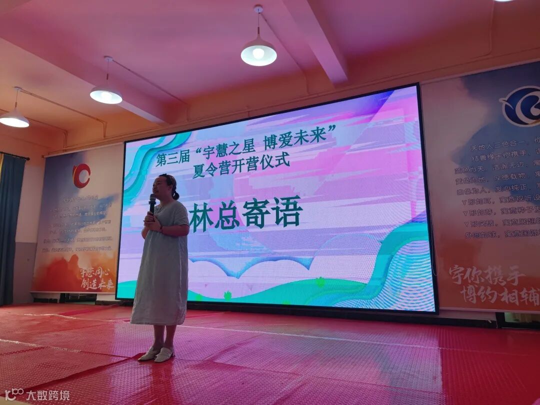 宇博大家长林总为开营仪式致辞。林总首先对这群“小可爱”表示了欢迎,并提到夏令营的举办是为了让在宇博工作的家长们可以和孩子们更多地相处,让孩子们能度过一个安全快乐的暑假,这是来自宇博的温暖关怀,请家长们放心,也感谢老师们的付出。她祝愿孩子们学有所得,留下一段开心又有意义的记忆。