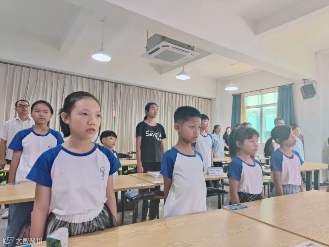 全体起立,奏唱国歌。在嘹亮的国歌声中,开营仪式正式拉开序幕。小学员们衣着整齐,精神饱满,激情昂扬,在庄严的国歌歌声感染下接受精神的洗礼。
