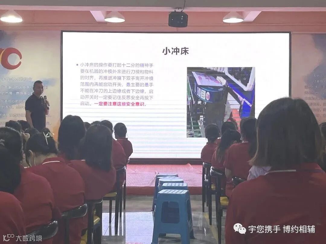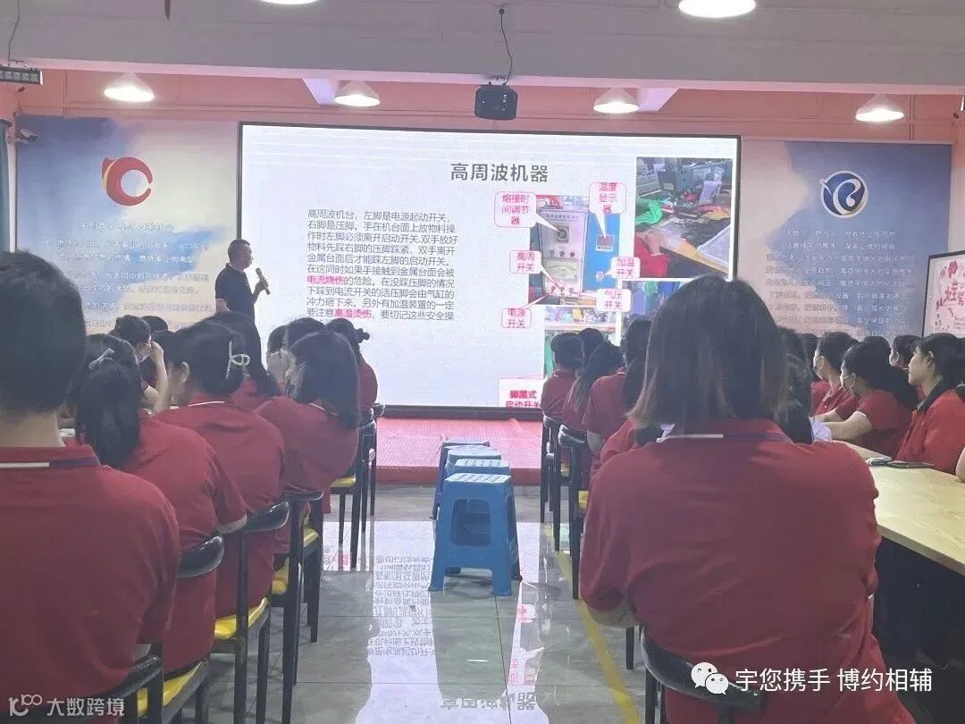 为进一步加强员工生产安全教育,提高安全生产意识,高周波和车缝部门在4/28日晚18:30对部门内的员工展开以安全为主题的培训。