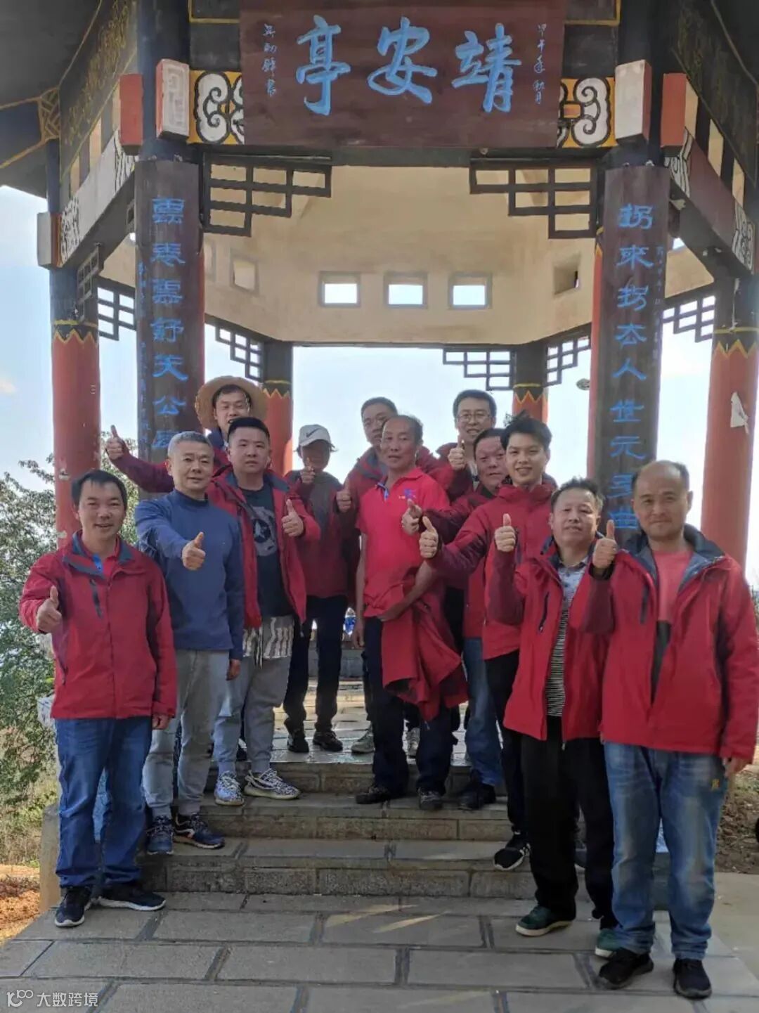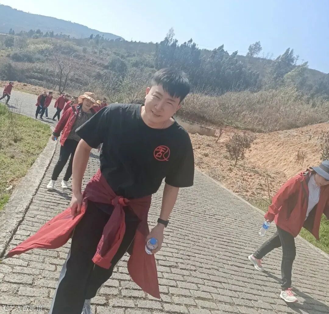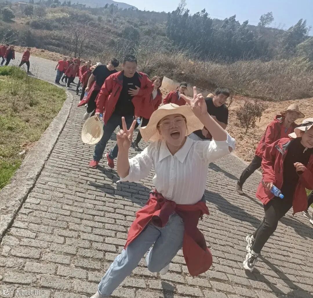(当大家齐聚山顶排成整齐的队伍摄影,