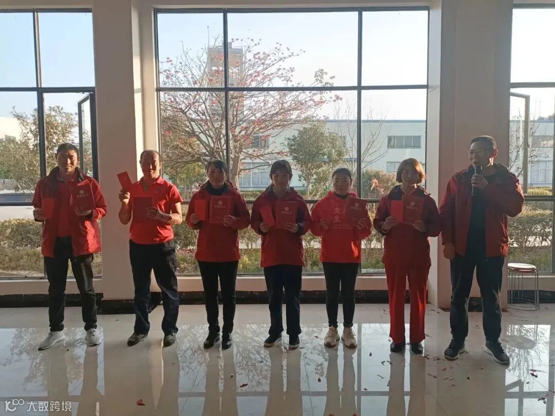 为员工们颁奖并合影留念