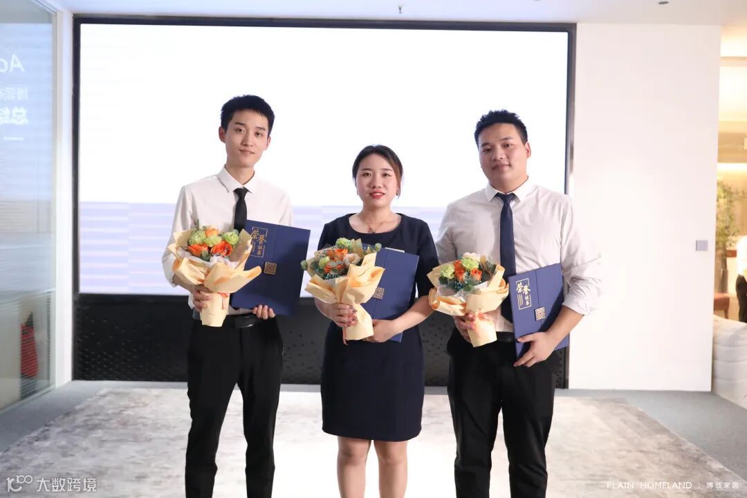 近日,博领家居杭州经销商赋能活动在总部经营团队及杭州优秀团队的共同努力下,取得显著的成绩,并于8月9日在博领家居集团总部对在此次活动表现优异的总部优秀店长黄国庆、经营销售张兰、孙磊进行表彰。