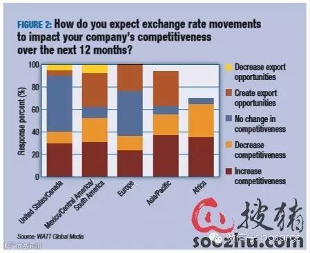比如,巴西和墨西哥货币兑换美元的比值下跌。虽然原材料的价格可能出现下降,但是鉴于比索或者雷亚尔的贬值情况,储蓄的资金并没有发生转化,这降低了这些国家的竞争力。而另外有许多人认为这些变化给他们的公司创造了出口机遇(图2)。